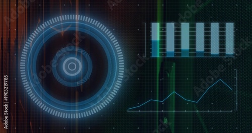 Fototapeta premium Showing large round HUD glowing left on sci-fi grid, displaying bar-chart,...