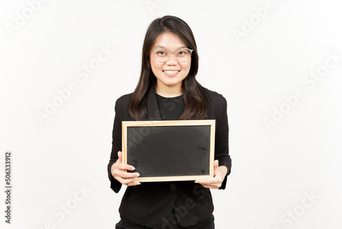 © Sino Images Studio, Fototapeta premium Showing, Presenting and holding Blank Blackboard Of Beautiful Asian Woman Wearing Black Blazer