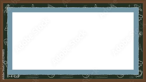 © vectorfusionart, Obraz premium Showing teal and slate blue panels on wood chalkboard with chalk doodles, transparent background