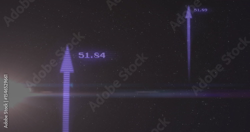 Fototapeta premium Showing two purple arrow markers pointing upward over starfield, with numeric...