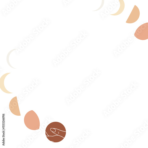 © vectorfusionart, Naklejka premium Showing vector lunar phases with sparkles and hand holding moon on transparent background