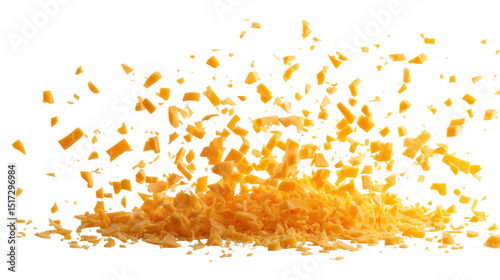© THESUN, Fototapeta premium shredded cheddar cheese spilling isolated, transparent background
