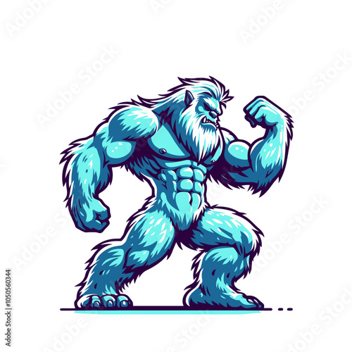 Obraz premium Shredded yeti bigfoot bodybuilder flexing muscles sports logo mascot
