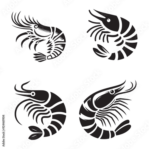 © Sadia, Obraz premium Shrimp Silhouette Vector Set, This is an editable and printable vector