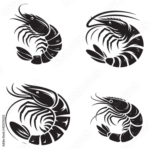 © Sadia, Obraz premium Shrimp Silhouette Vector Set, This is an editable and printable vector