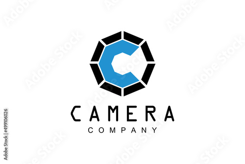 © Sariyah, Fototapeta premium Shutter aperture camera lens logo design with initial Letter C