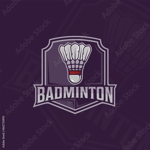 © zyxroun, Fototapeta premium shuttlecock of badminton emblem logo vector illustration template icon graphic design. sport sign and symbol for club or academy or tournament with badge modern style concept