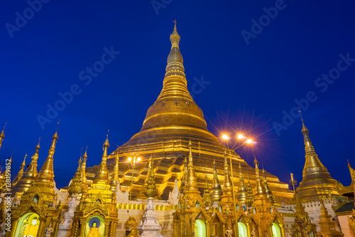 Fototapeta premium Shwedagon pagoda after sunset, Yangon city