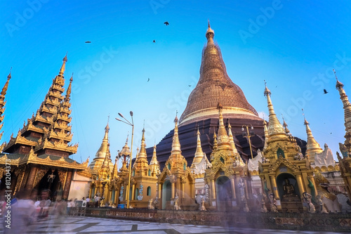© sahachat, Fototapeta premium Shwedagon Pagoda repair every five years at a time so as not to