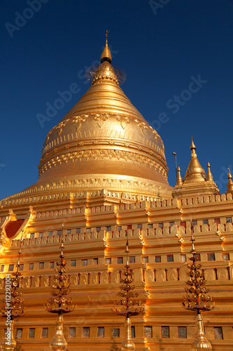 Fototapeta premium Shwezigon Pagoda in Bagan, Myanmar (former Burma) at sunrise.