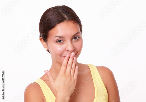 © pablocalvog, Fototapeta premium Shy cute girl with mistake gesture