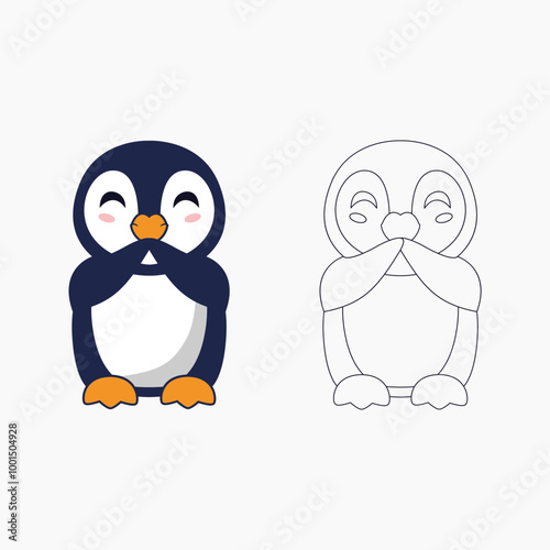 © Jatu, Obraz premium Shy Penguin Coloring Activity for Children