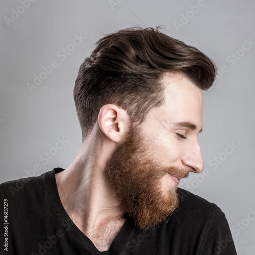 © yurko_gud, Obraz premium Shy young man isolated on gray backround