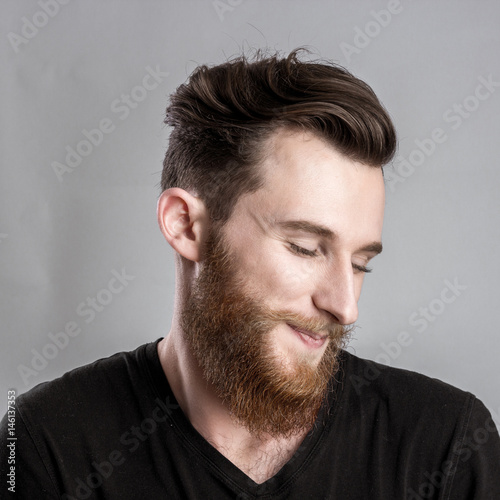 © yurko_gud, Obraz premium Shy young man isolated on gray backround