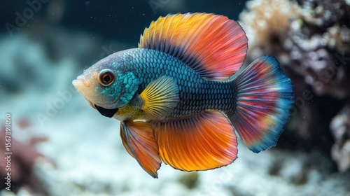 Obraz premium Siamese fighting fish with rainbow-colored fins dancing in clear water,...