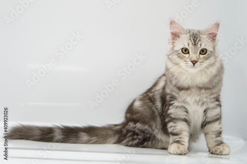 © Pavla, Obraz premium Siberian cat on white backgrounds