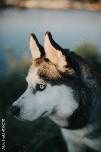 © Natalia, Fototapeta premium Siberian husky at the lake
