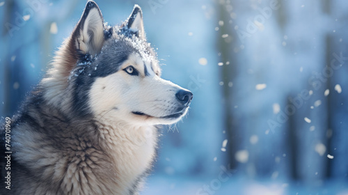 Naklejka premium Siberian husky dog in snow