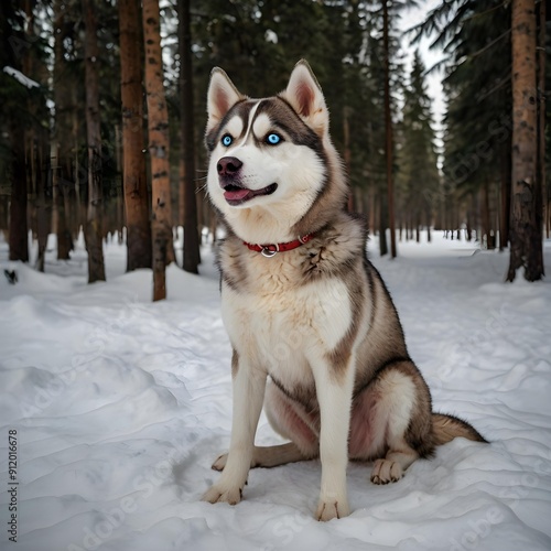 © AK IMAGES GENERATION, Fototapeta premium siberian husky dog in snow