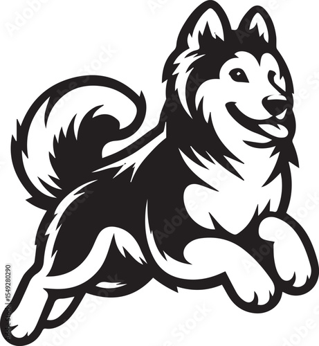 Fototapeta premium Siberian Husky Dog Vector Illustration in Black and White