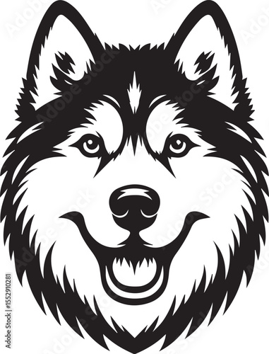 Obraz premium Siberian Husky Dog Vector Illustration in Black and White