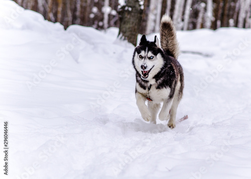© Александр Маланькин, Naklejka premium siberian husky in the snow