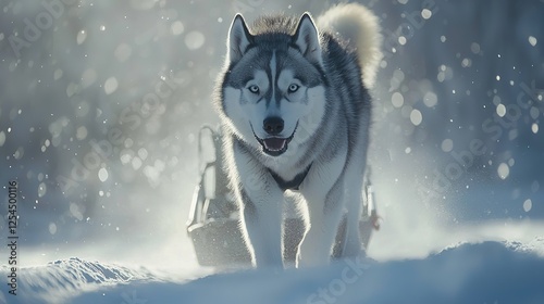 Naklejka premium Siberian Husky in Winter Wonderland