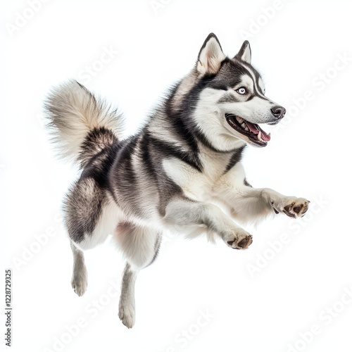 © JHONDOMINIC, Obraz premium Siberian Husky jumping with all four paws off the ground in excitement