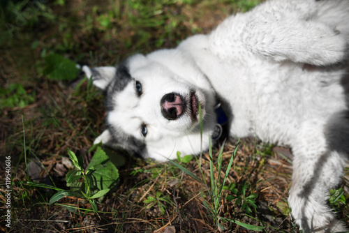 © lisa1305, Fototapeta premium Siberian Husky on the lake in the park