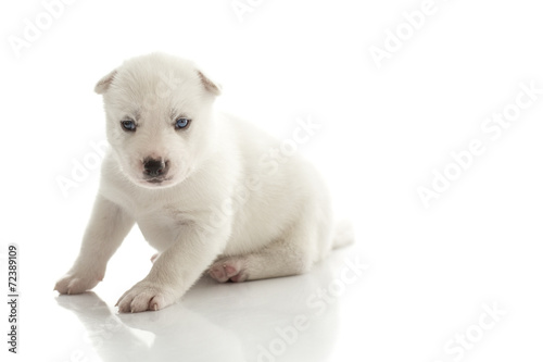 Fototapeta premium Siberian husky puppy on white background