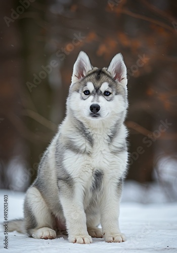 © Michael, Naklejka premium Siberian Husky Puppy: Winter Wonderland Gaze