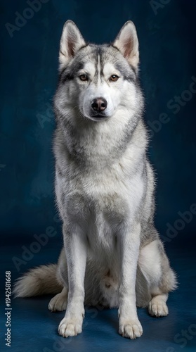 Obraz premium Siberian Husky Studio Portrait on Blue Background, Majestic Dog Image