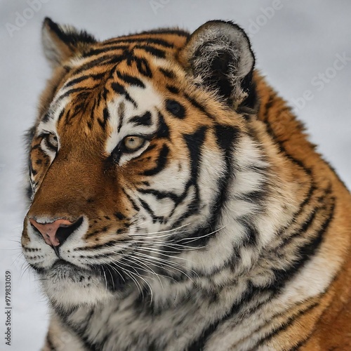 © samsulalam, Fototapeta premium Siberian tiger posing with intense stare in the snow