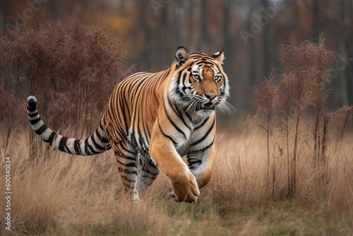 Naklejka premium Siberian Tiger running. Beautiful, dynamic