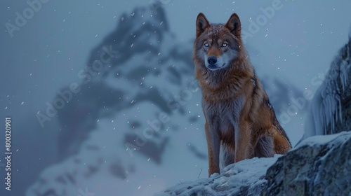 Obraz premium Siberian wolf, mountain, snow generative ai
