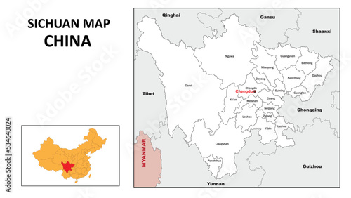 Fototapeta premium Sichuan Map of China. State and district map of Sichuan. Administrative map of Sichuan with district and capital in white color.