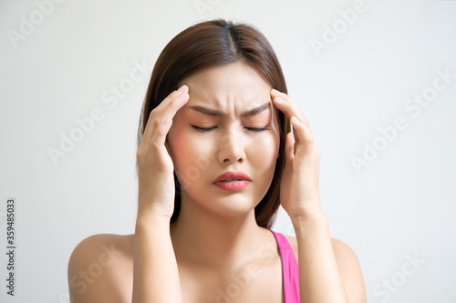 © 9nong, Fototapeta premium sick asian woman having fever headache