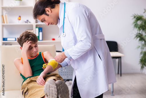 Obraz premium Sick boy visiting young male doctor pediatrician