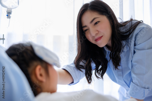 © SHUTTER DIN, Fototapeta premium Sick girl lying on the hospital bed