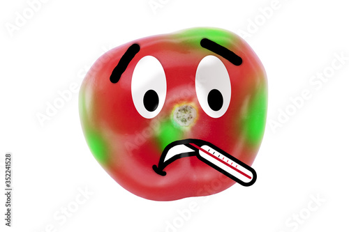 © Николай Батаев, Fototapeta premium Sick stylized tomato character with thermometer