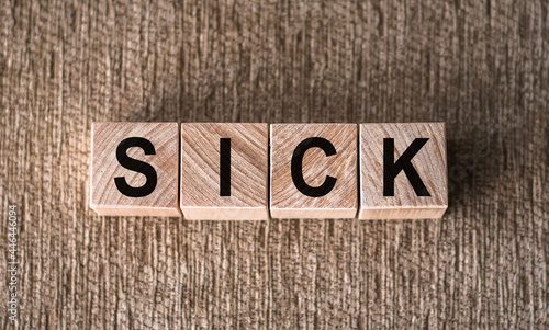 © Nastassia, Fototapeta premium SICK word written on wooden blocks on a brown background.
