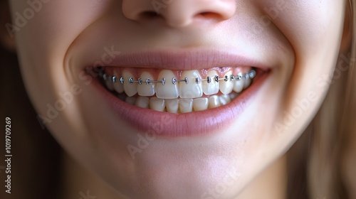 © Alpha, Fototapeta premium Side-by-side comparison of a patient's first day with braces and their smile post-braces, close-up shots capturing dental transformation, Photography, Natural Lighting