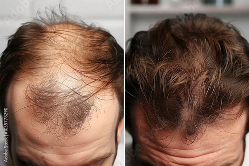 Naklejka premium Side-by-side comparison of hair thinning treatment results before and after