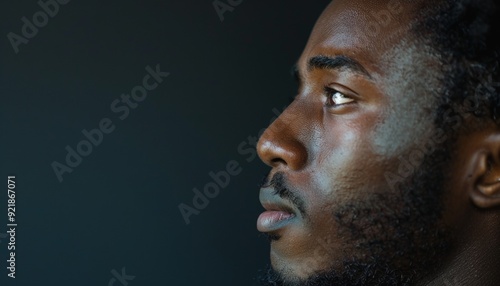 Obraz premium Side Portrait of African American Man Staring, Thoughtful Expression