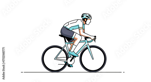 © somkhuan1960, Fototapeta premium Side profile of a cyclist on a racing bicycle, clean and simple flat vector art illustration for sports and active lifestyle concepts