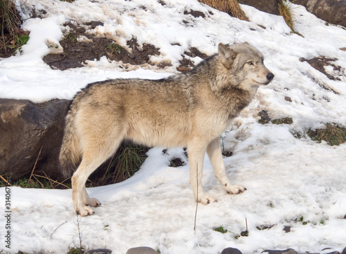 © Wally Tai, Obraz premium Side profile of a gray wift with a light colored coat looking away from camera.