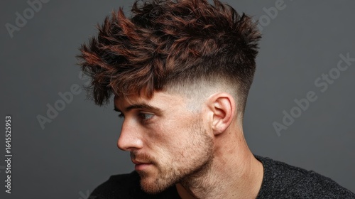 Fototapeta premium Side profile of a man with a textured messy fade haircut