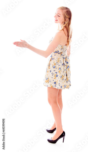 © bruno135_406, Fototapeta premium Side profile of a young woman offering hand for handshake