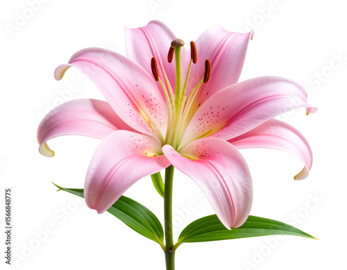 © Sujon Shah, Fototapeta premium Side Profile of Pink Lily with Curved Petals and Long Green Stem – Isolated PNG