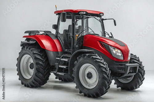 Obraz premium side profile of the tractor, highlighting its wheels, cab, and body
